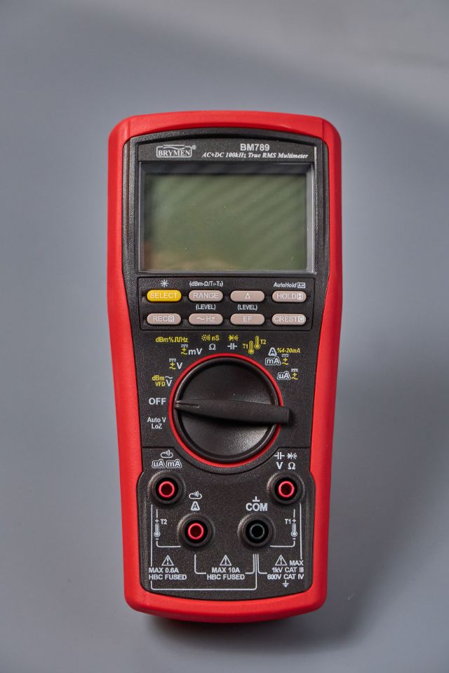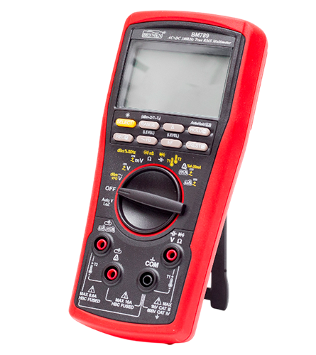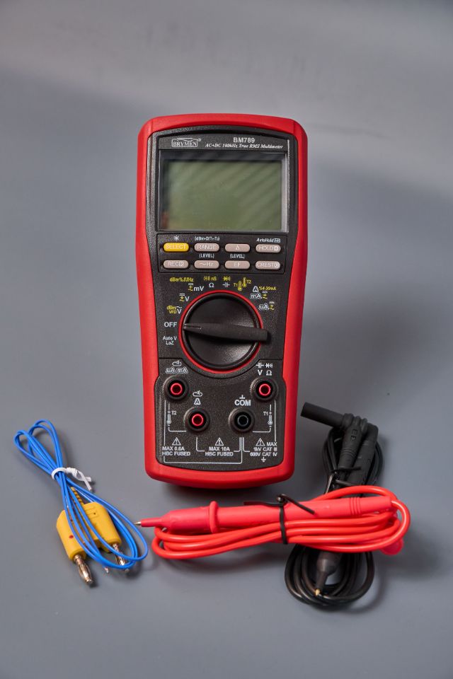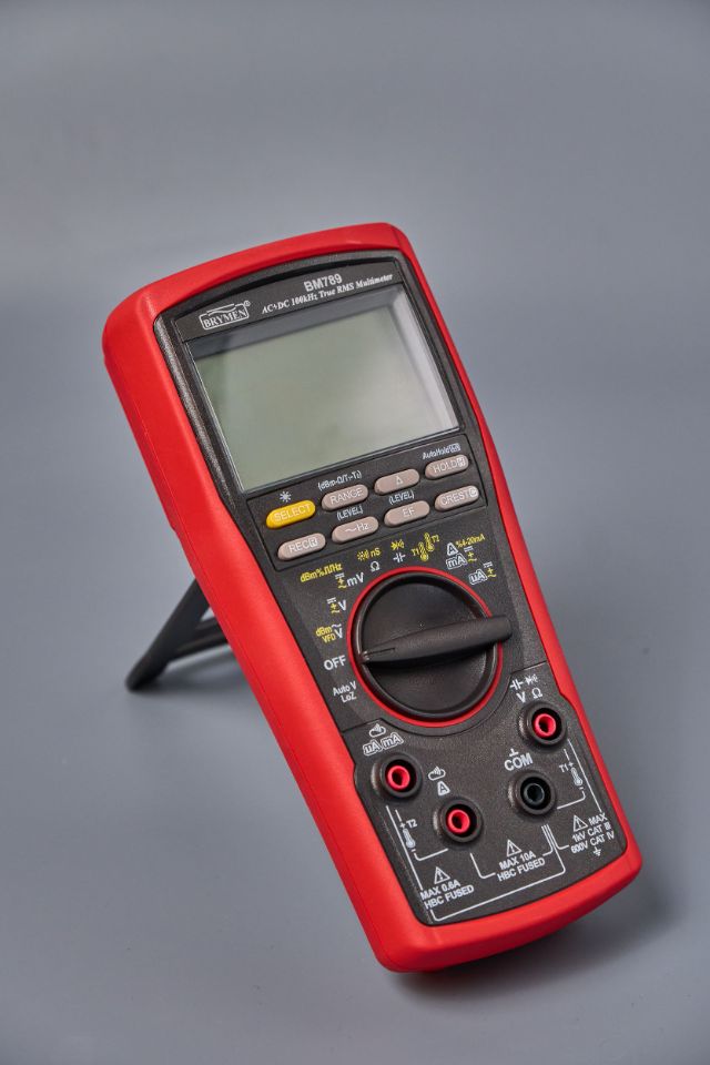 Brymen BM789 — профессиональный мультиметр с разрешением 60000 отсчетов и полосой пропускания 100 кГц, поддерживающий измерение истинных среднеквадратичных значений (True RMS) и имеющий категорию перенапряжений CAT-III 1000 В. Корпус прибора выполнен в формованном защитном кожухе для повышения эргономики и безопасности.